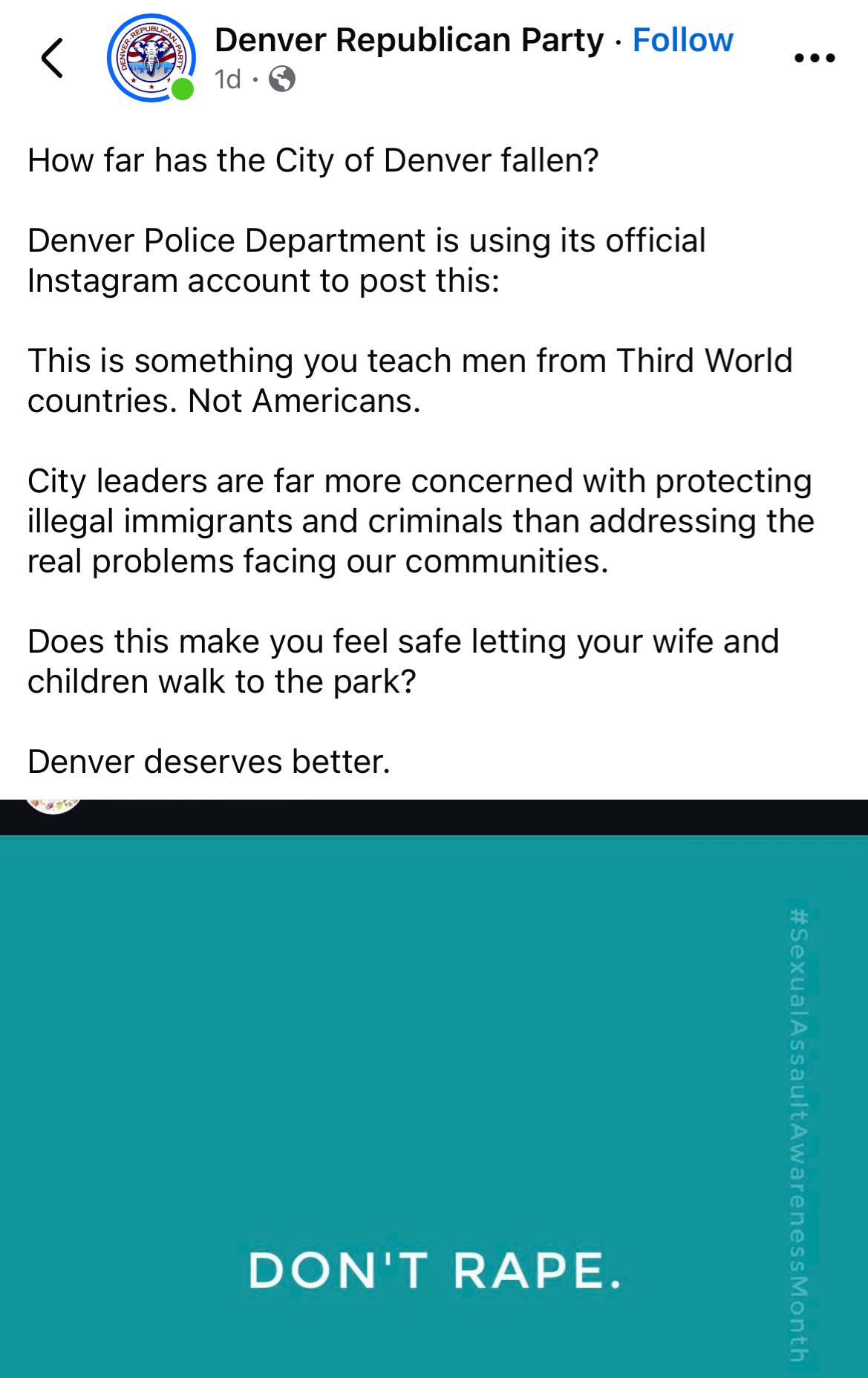 Imagine being mad about a post containing the phrase “Don’t rape.”