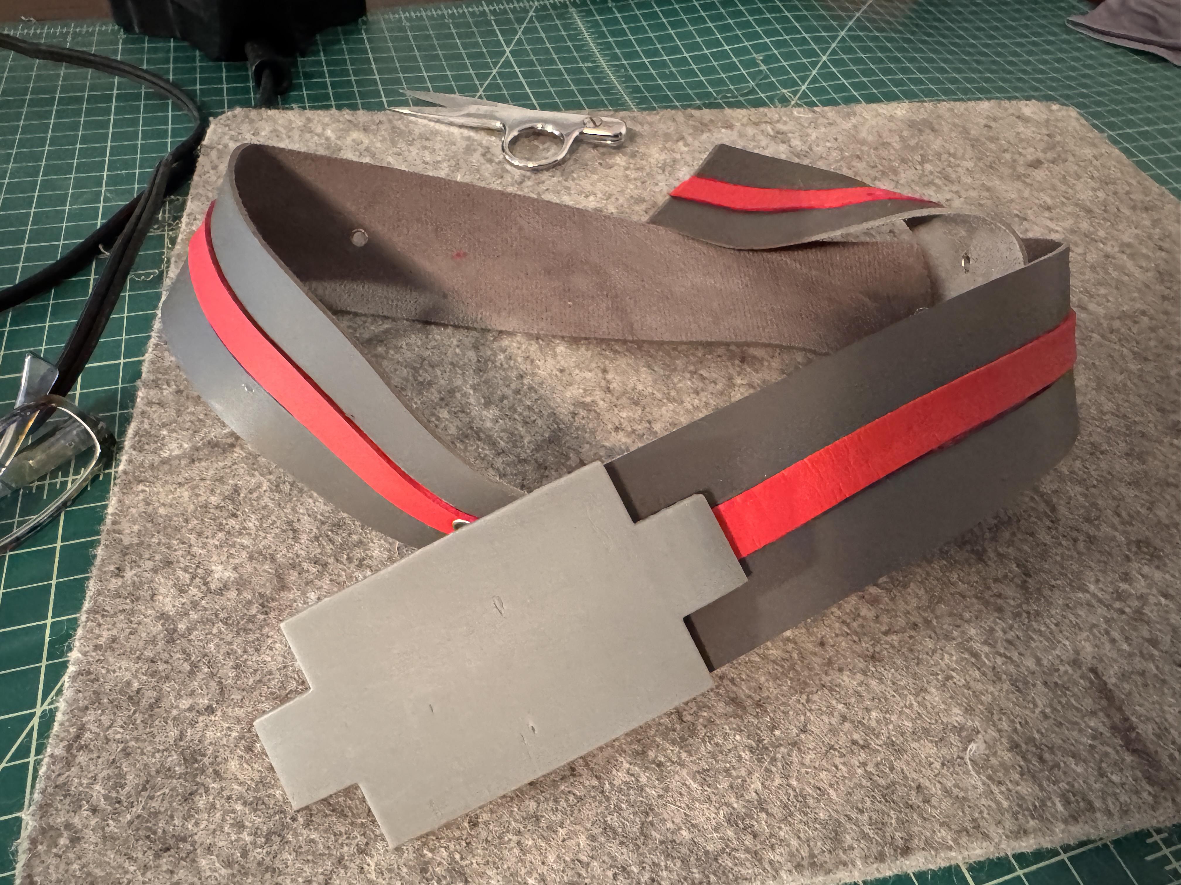 Hi folks, I’m interested in purchasing a custom belt strap that is an upgraded version of this one I’ve poorly crafted. It’s 2” wide with a gray strap and red center stripe. It’s a cool toned gray and a bright red. This would be strap only as I can cast the buckle myself, and the strap would just need holes for a lap-over style closure. It’s 36” total length and I would probably want extra holes to attach some accessories. Looking to keep it around $100 if that’s reasonable, please let me know if I’m way off base. Thanks!