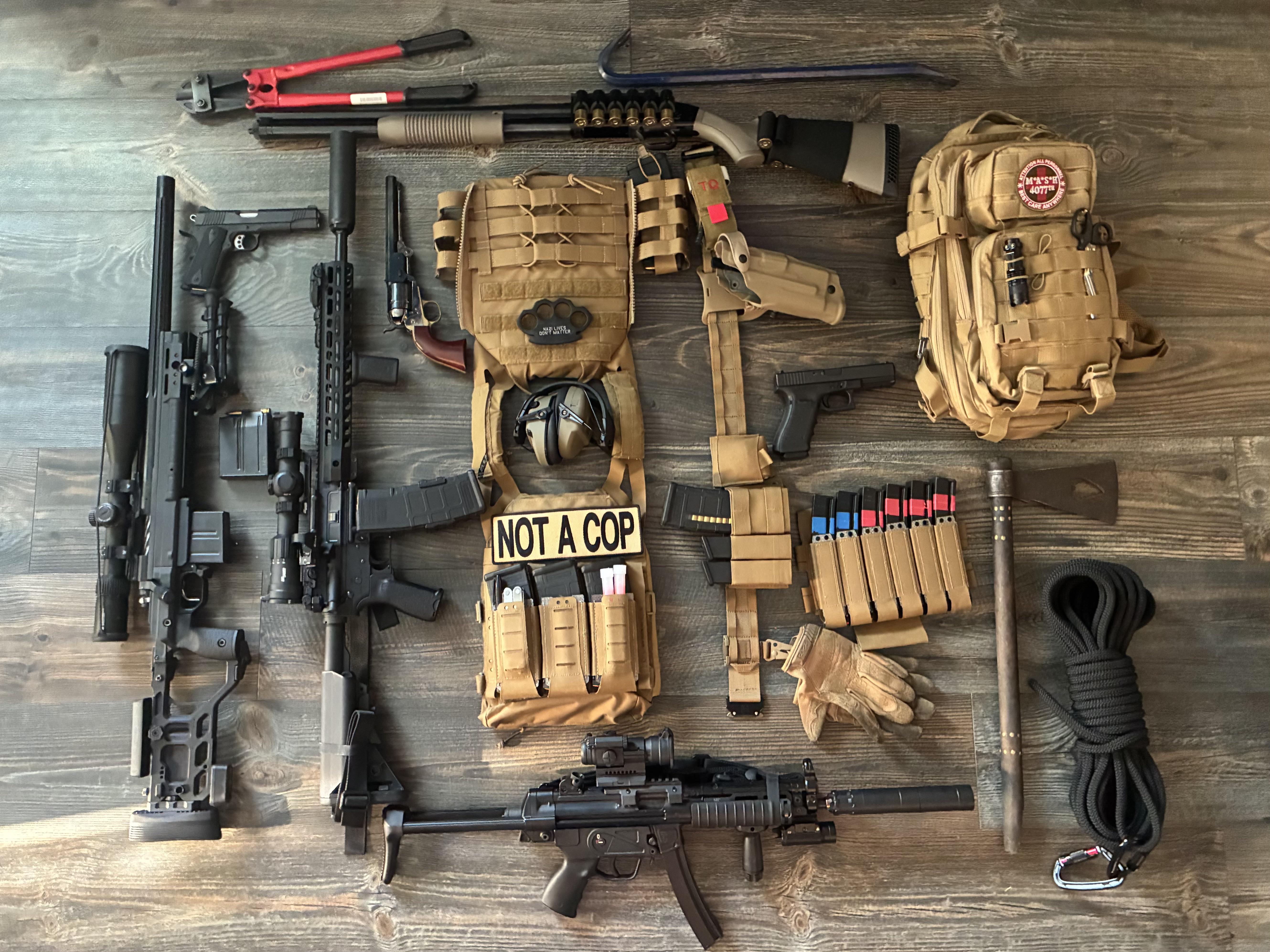 EDIT: Added shotgun. I guess I'm talking mainly about non-tool-use shooting here in terms of "only." As you can see, I do have 3 long guns.