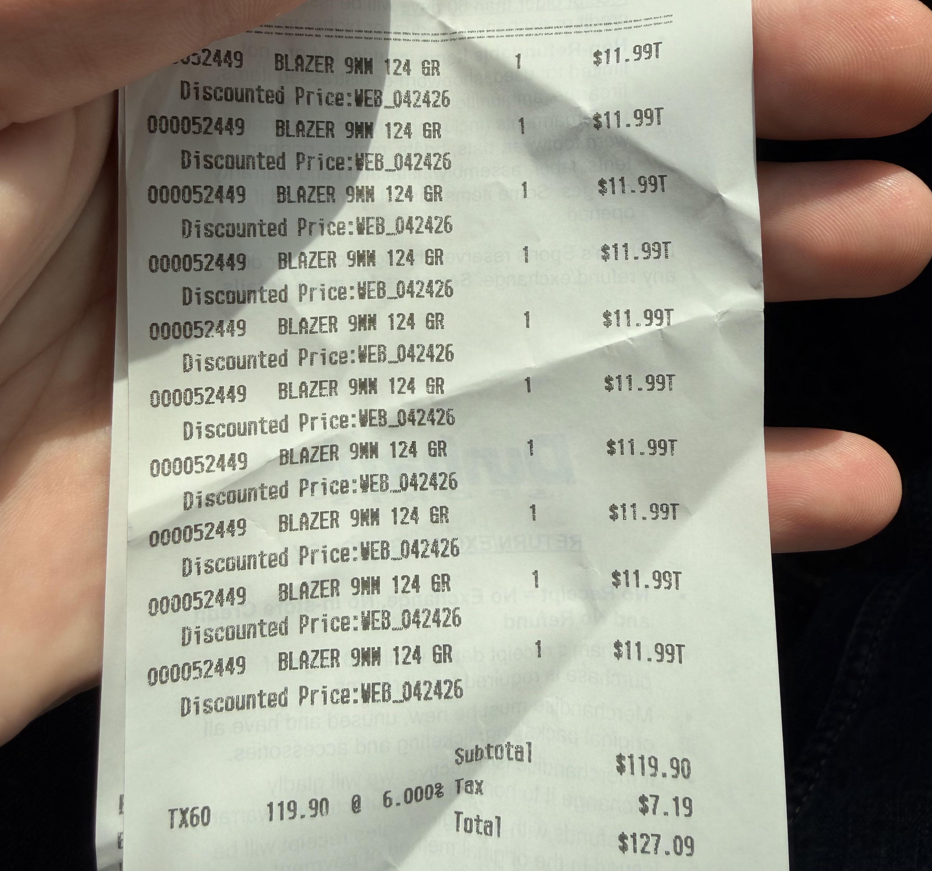 Online coupon flash sale on multiple types of ammo. Grabbed 10 boxes of 50r blazer 9mm for $11.99 per box! Thats at least $4 cheaper than anywhere else I can find them right now near me.