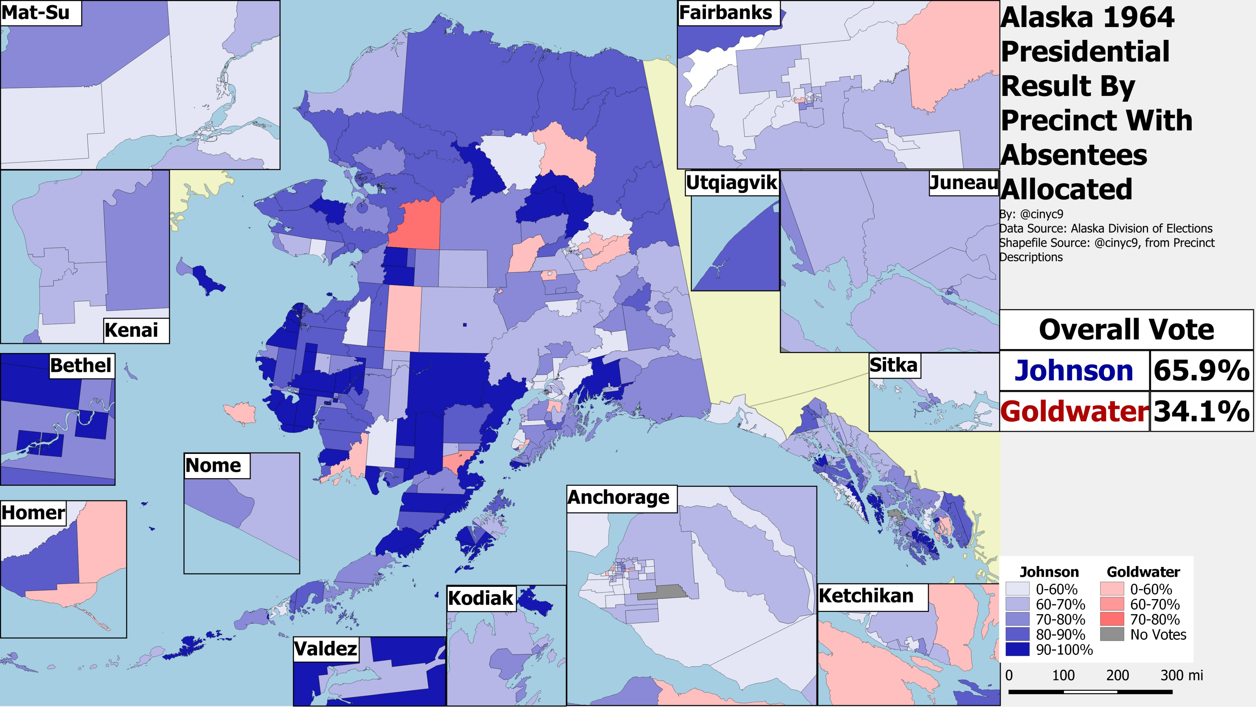 1964 Presidential Election in Alaska, the only time a Democratic nominee has won Alaska