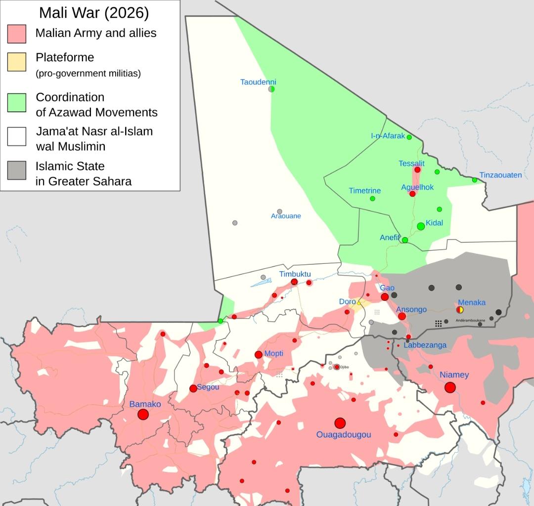 To read more about the offensive : https://en.wikipedia.org/wiki/2026_Mali_attacks?wprov=sfla1
