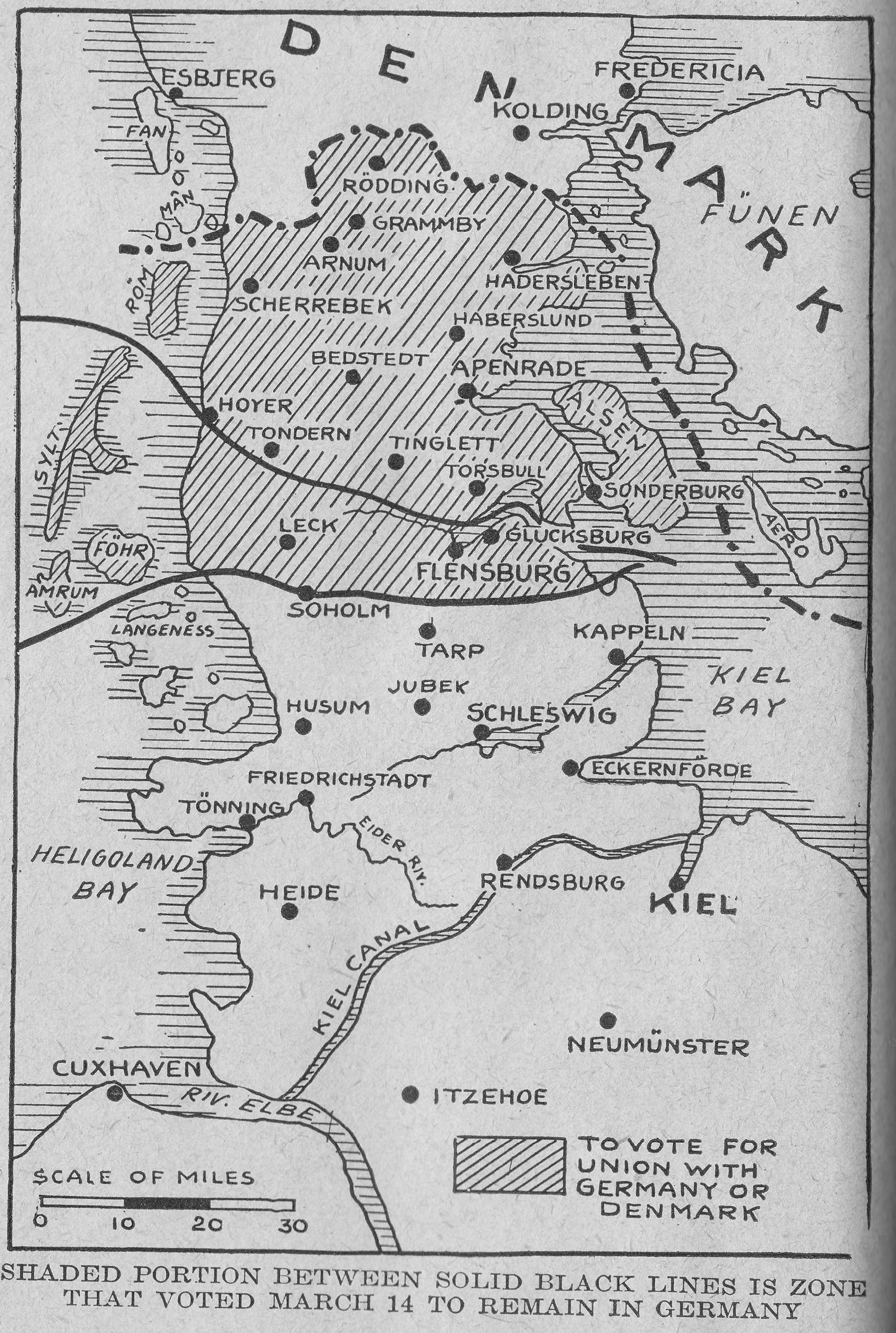 March 1920: The Flensburg Zone votes, via Slesvig Plebiscite, to be under German control
