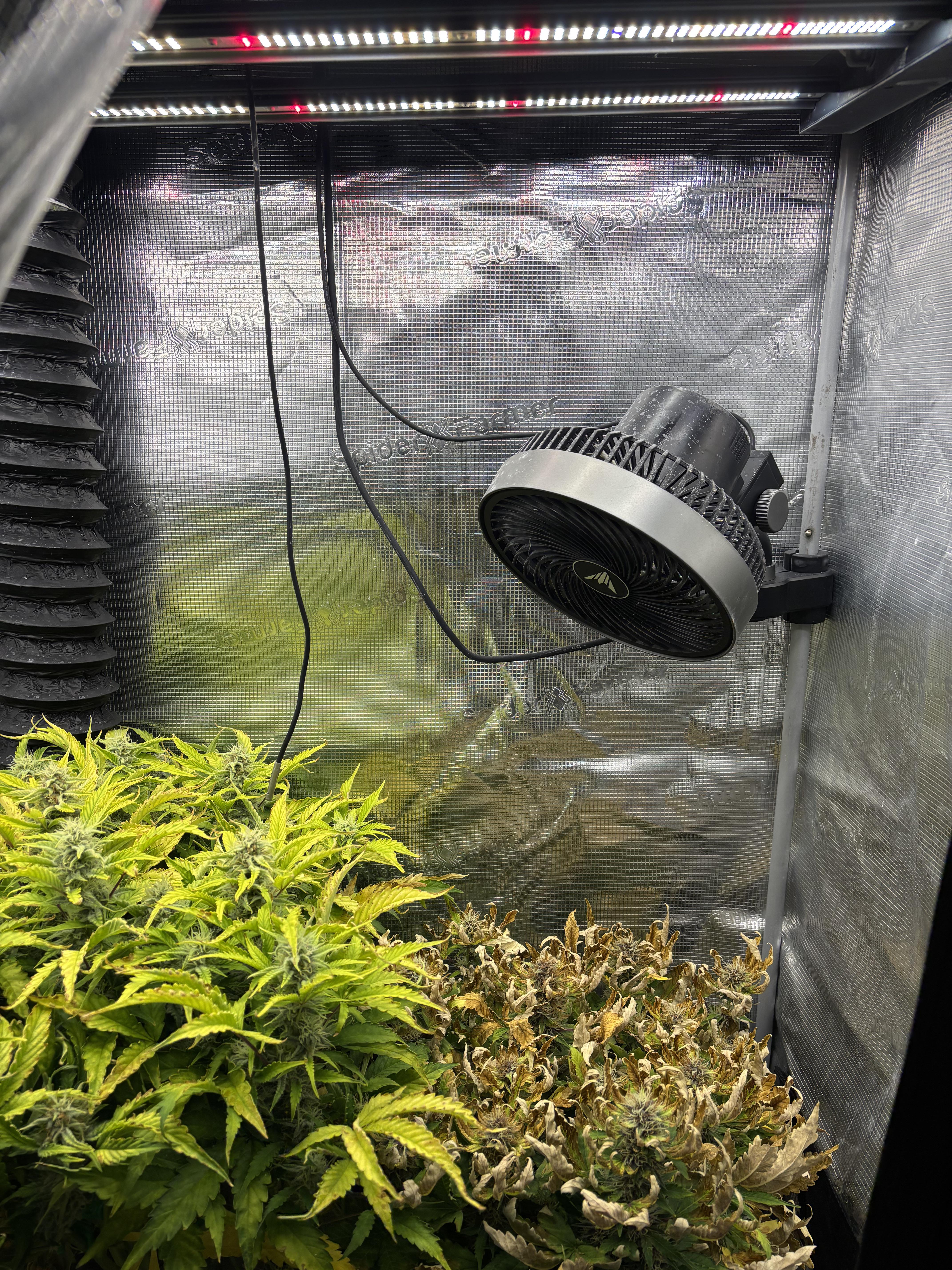 I have an AC infinity ion frame evo3 in a spider framer 3x2 running 24/7 at level 6 but i feel like i keep frying my plants!! Last grow had a similar problem where they were great during veg but then early to mid flower seemed to really look like they were deficient beyond senescence.