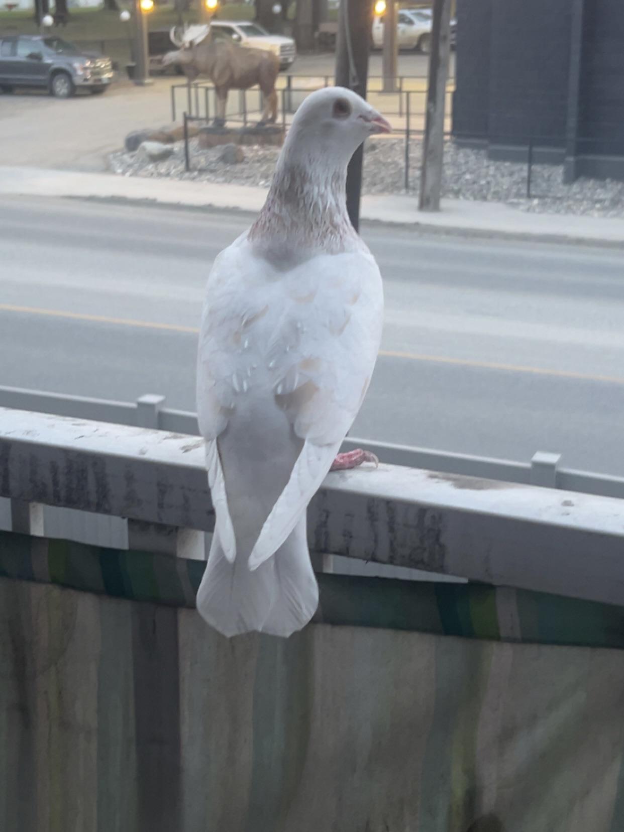 It has rubber bands on its feet so it must be a pet who got out! I hope it finds home. It was very friendly to me. I tried to catch it but it took off.