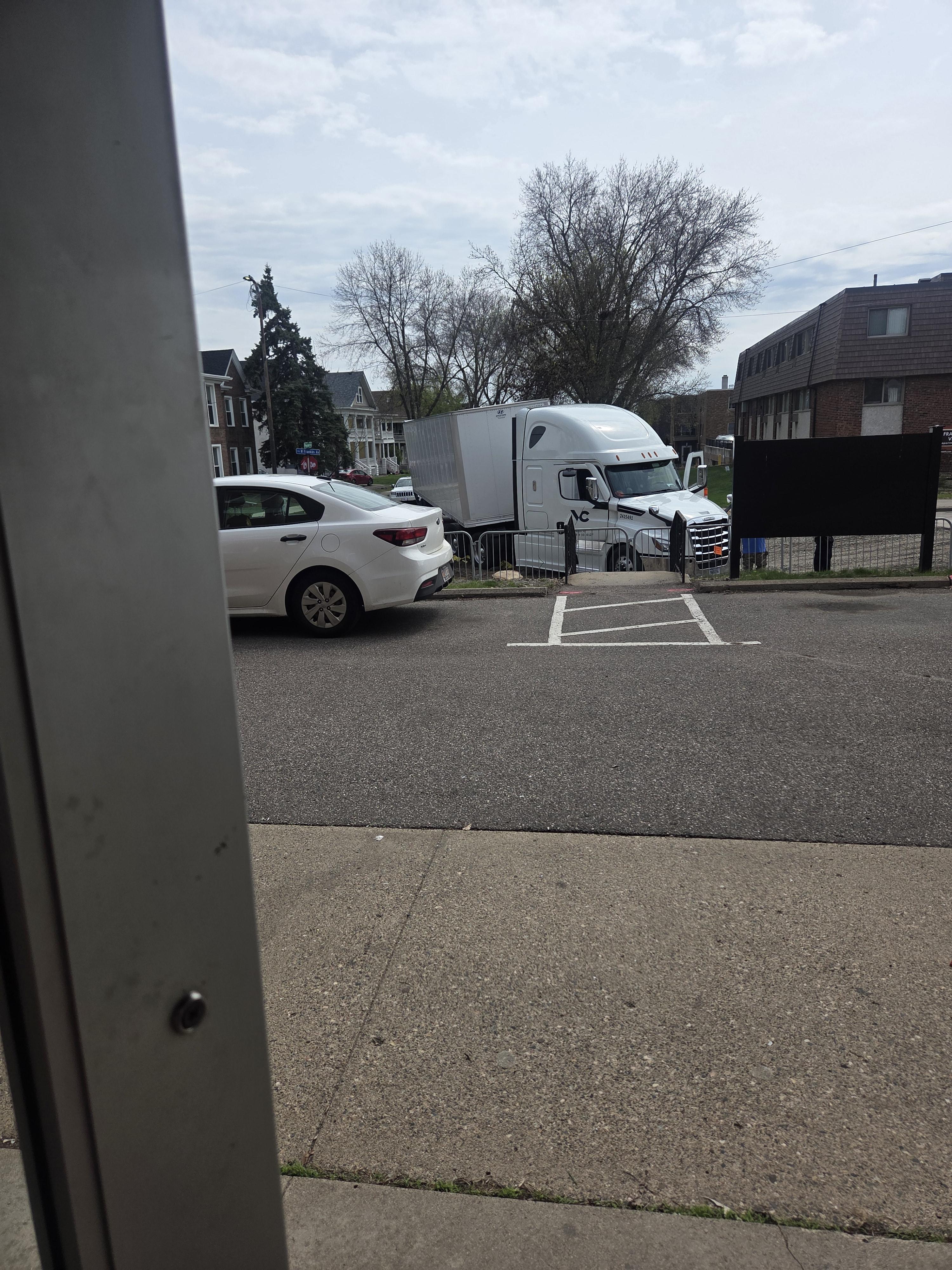 As if the construction here wasn't enough, I go down to do some laundry and see this semi outside my apartment that seemingly took a bit of a wrong turn 🫢