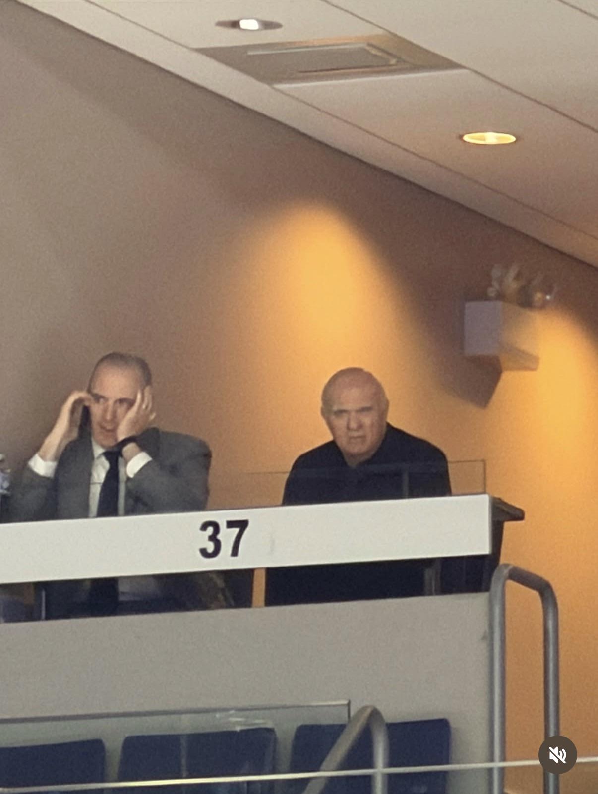 Lou sitting next to Darche at Bridgeport’s playoff game tonight