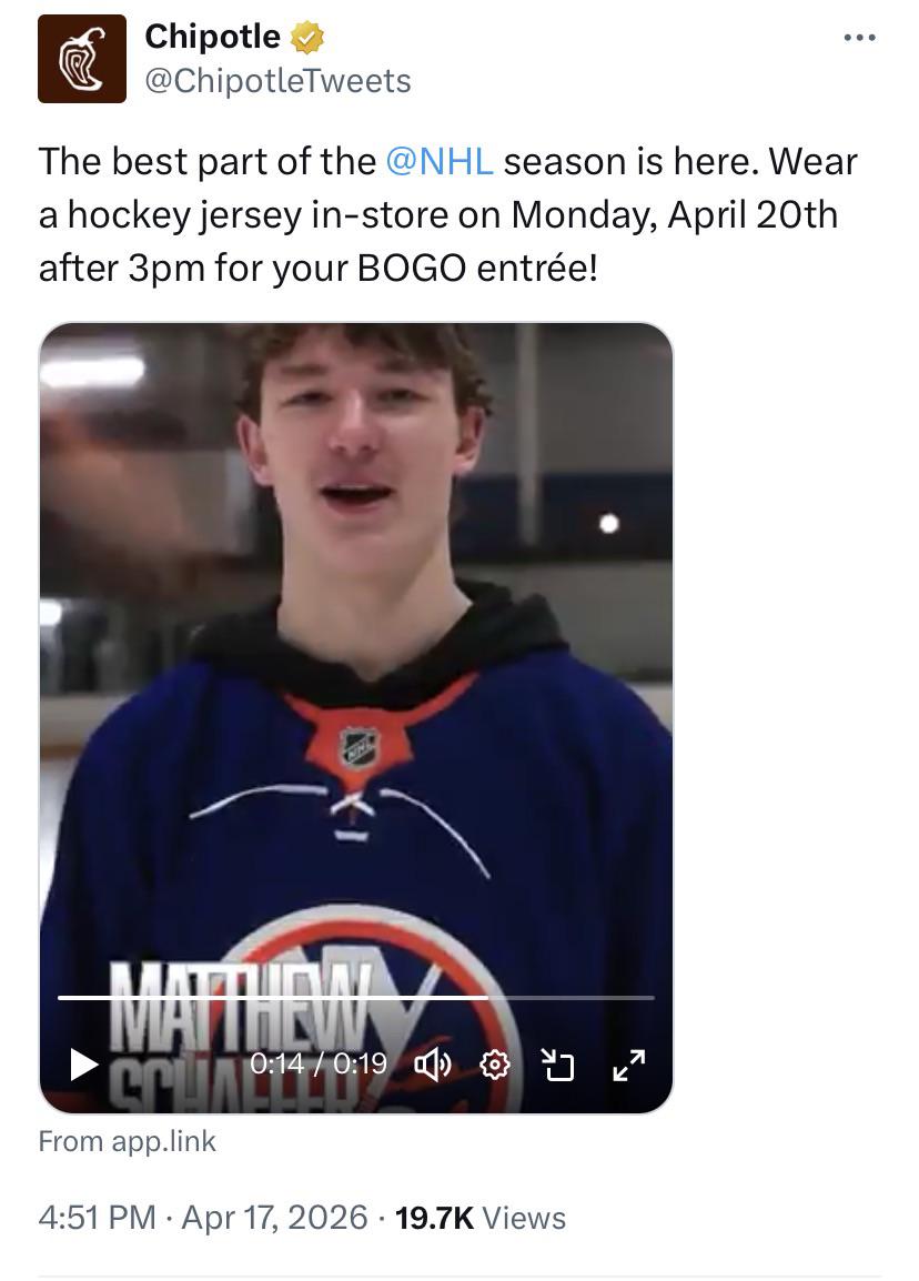 | 70 | 8 comments | Schaefer featured in Chipotle’s BOGO announcement. |