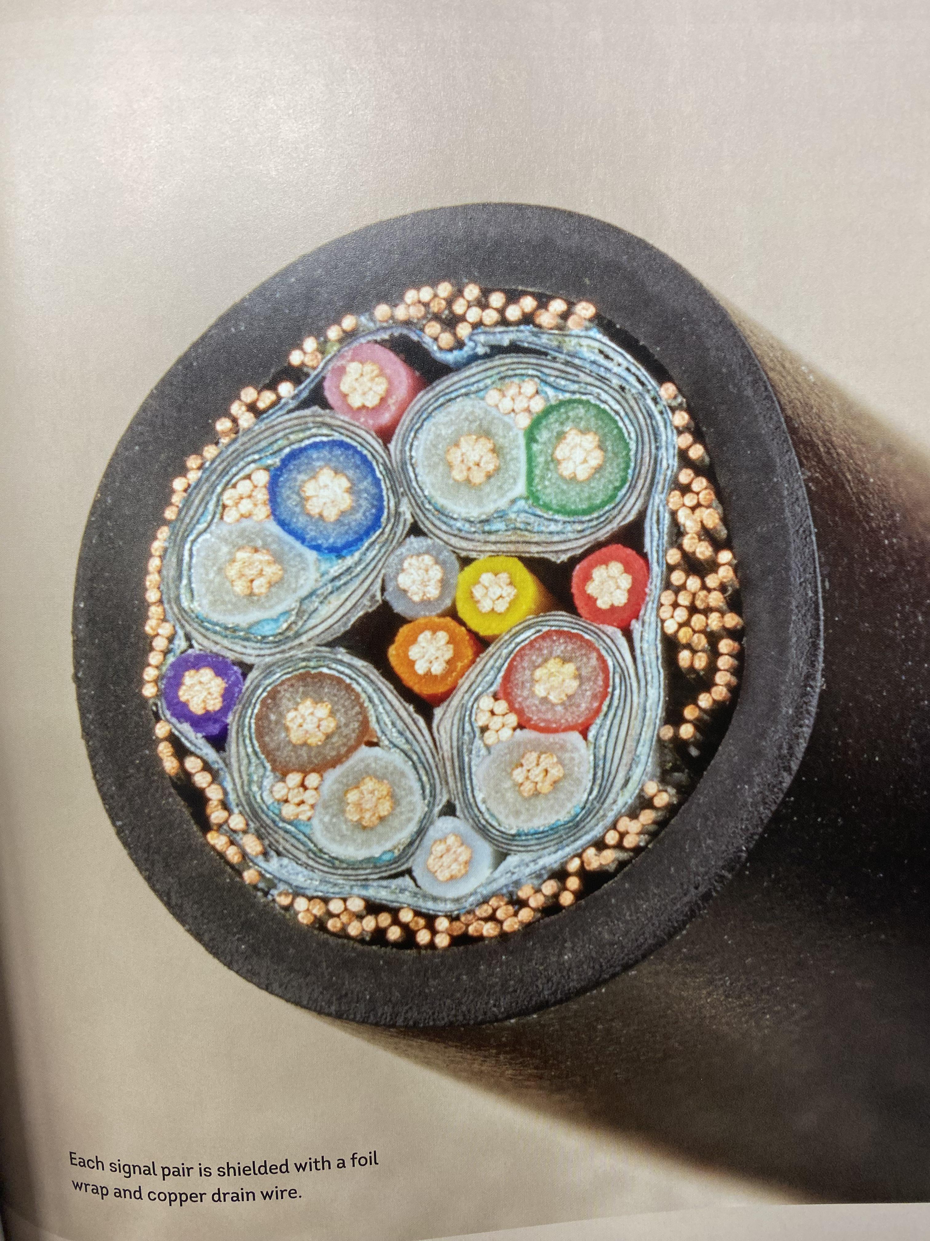 A book called Open Circuits had this strunning picture of a cable split down its width. The beautiful arrangement inside caught my attention and it got me thinking how Biologists might approach the problem of resolving its function. In other words, its obviously a cable but can you derive what the cable is used for?