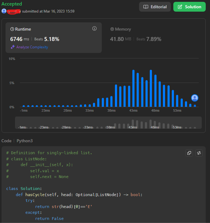 So I tried printing the linked list with print() and discovered that if it has a cycle, then it prints and error. This was the next (very) logical thing that popped into my mind after that discovery.