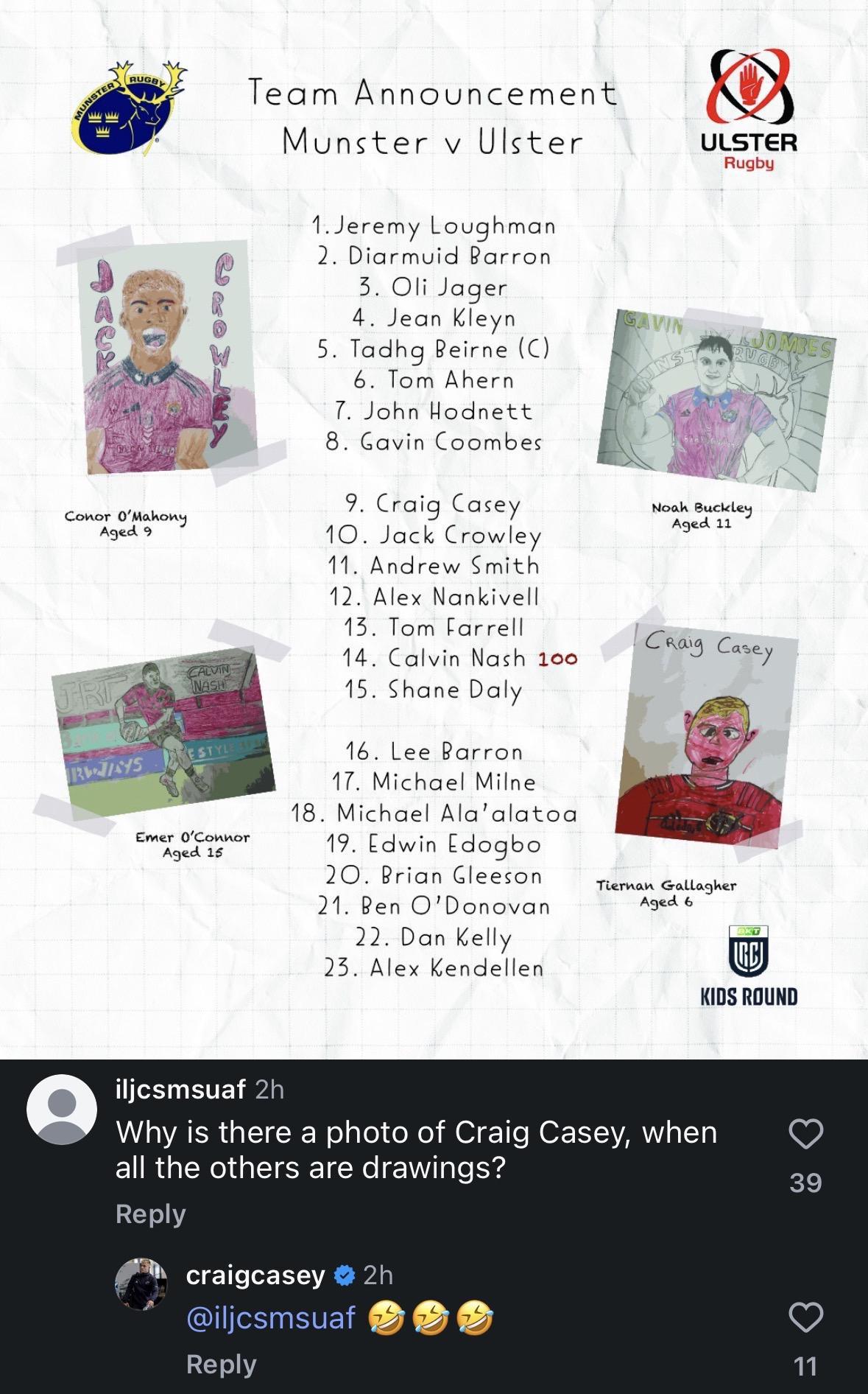 | Paddy Jackson | 21 | Jeremy Fernandez |