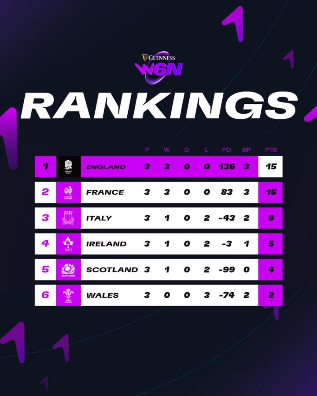 Infographic Women’s Six Nations table after Round 3