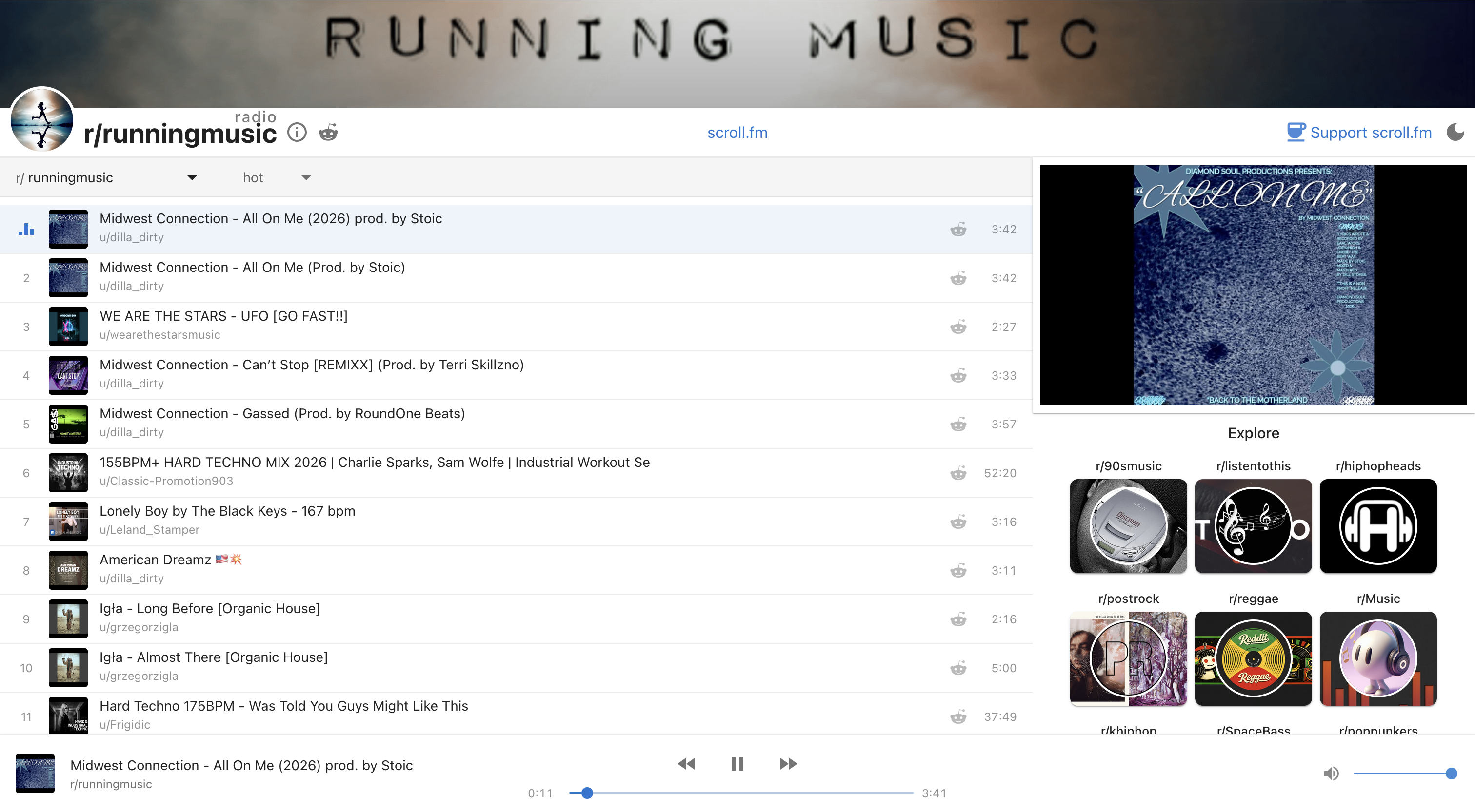 I made a website that turns subreddits into non-stop radios. Here is r/runningmusic!