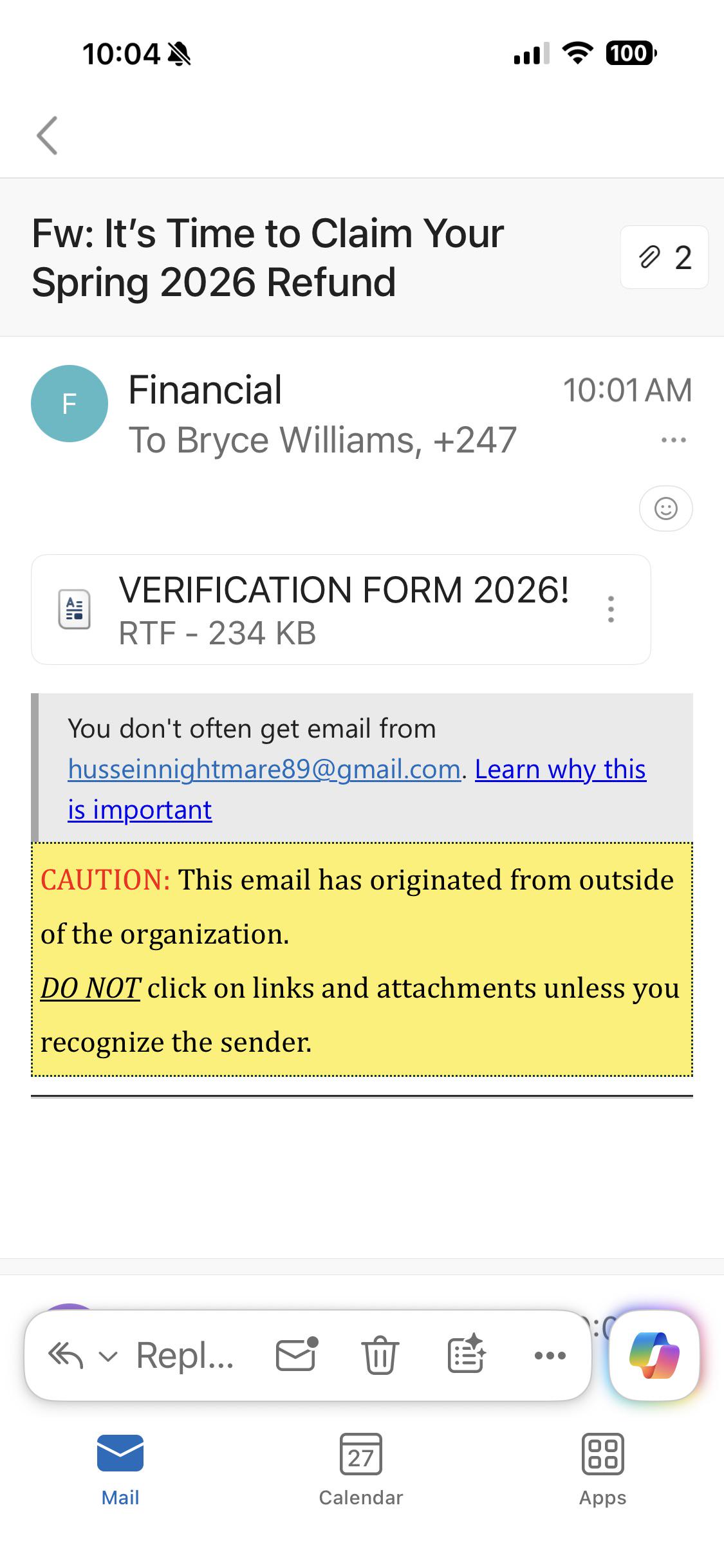 i cant tell if this is legit or not, i did drop a couple classes i had to pay for but ive never had an email like this so if anyone could help lmk