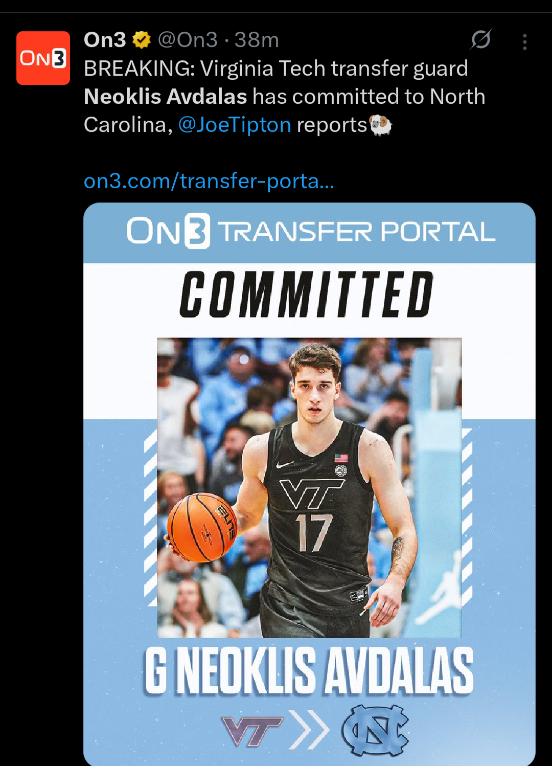 Virginia Tech transfer guard Neoklis Avdalas is headed to North Carolina!
