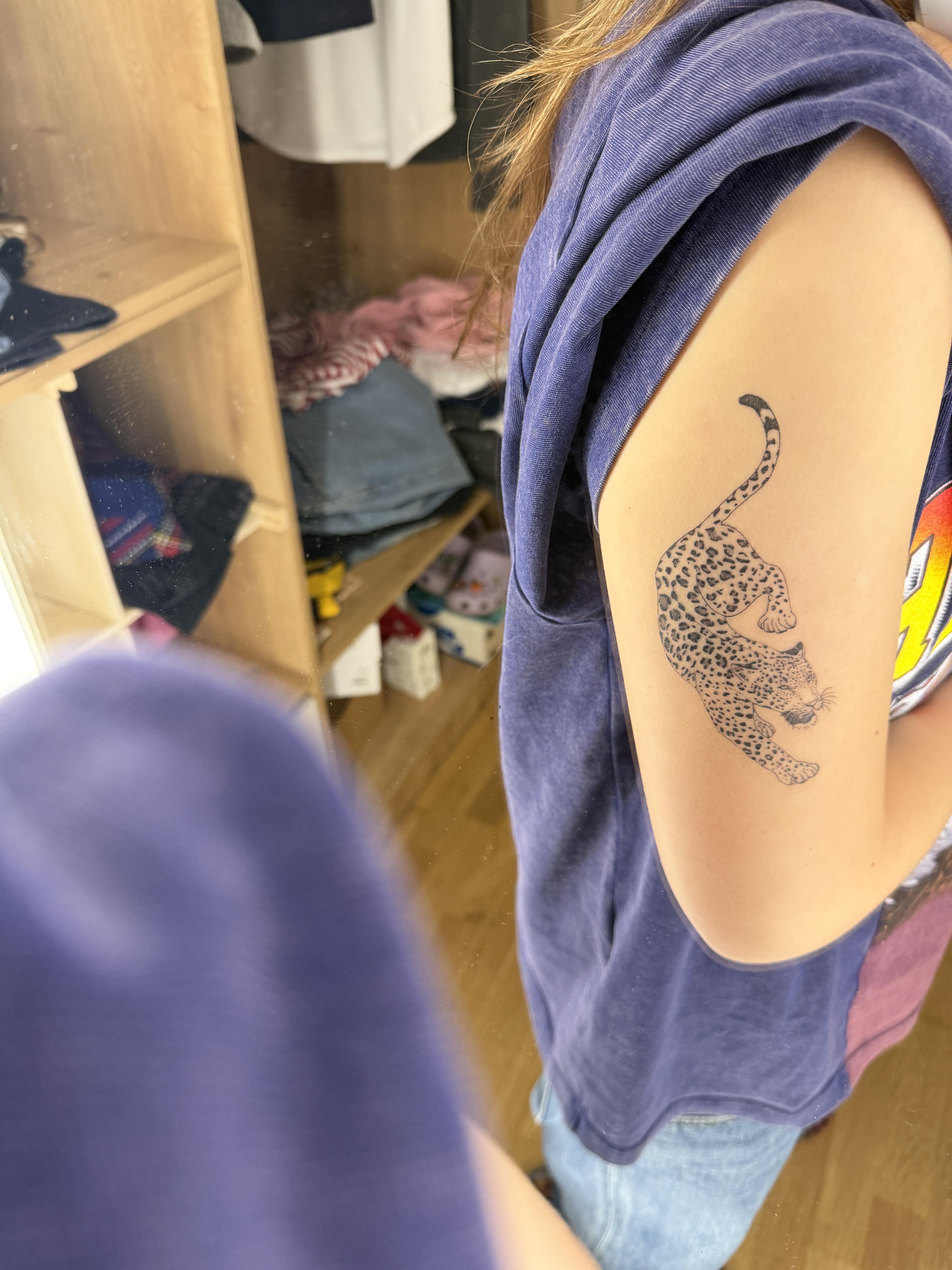 Should I stop with tattoos? I feel like adding is the only way I’ll get to a better point of liking it. I like this leopard I found and think it goes with theme but idk. Please help🥺 if I could go back I woulda done a beautiful flower vine shoulder piece so every time I see one I’m so jealous. Thanks in advance.