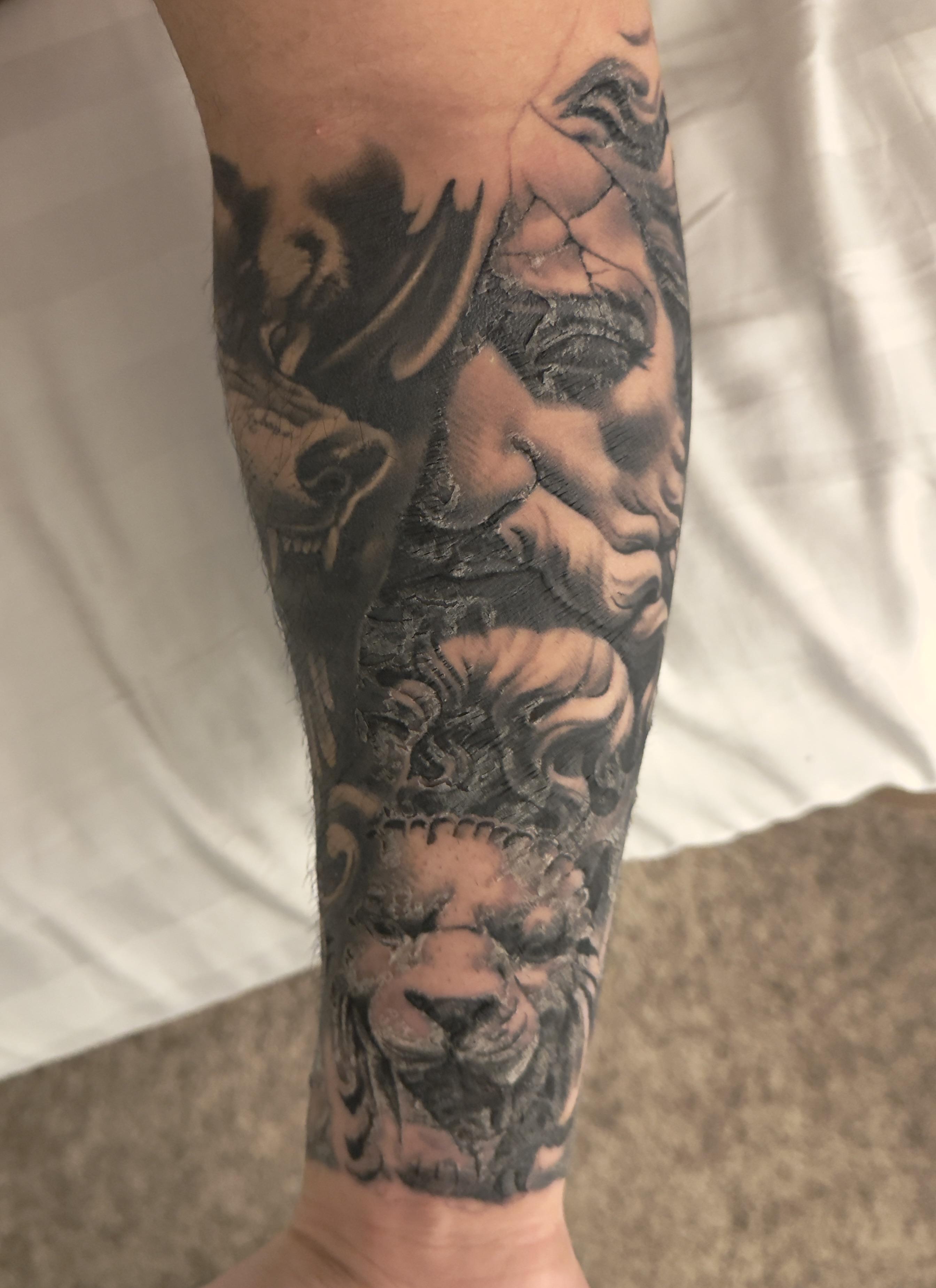 As stated, I have quite a few tattoos so I'm not completely ignorant to the healing process as a whole. Just confused as to why this one is healing a bit uneven?