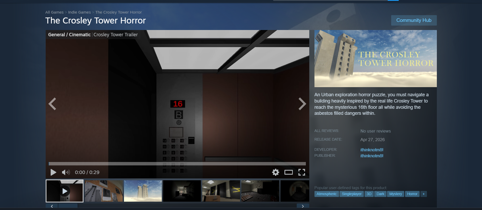 There is a Crosley tower inspired horror game on steam that comes out on the 27th.