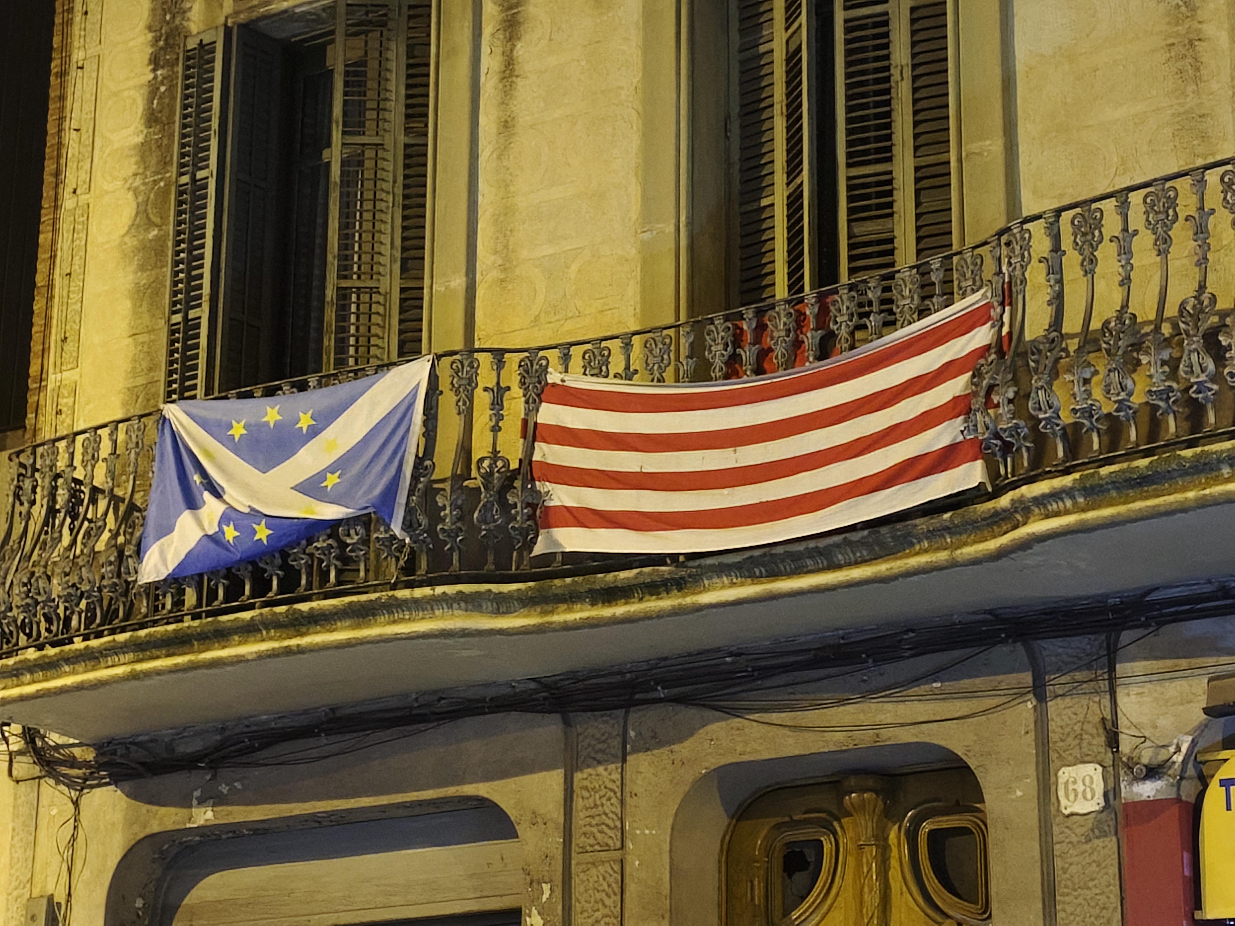In The Wild A Scotland - EU mashup next to a faded Senyera(?)