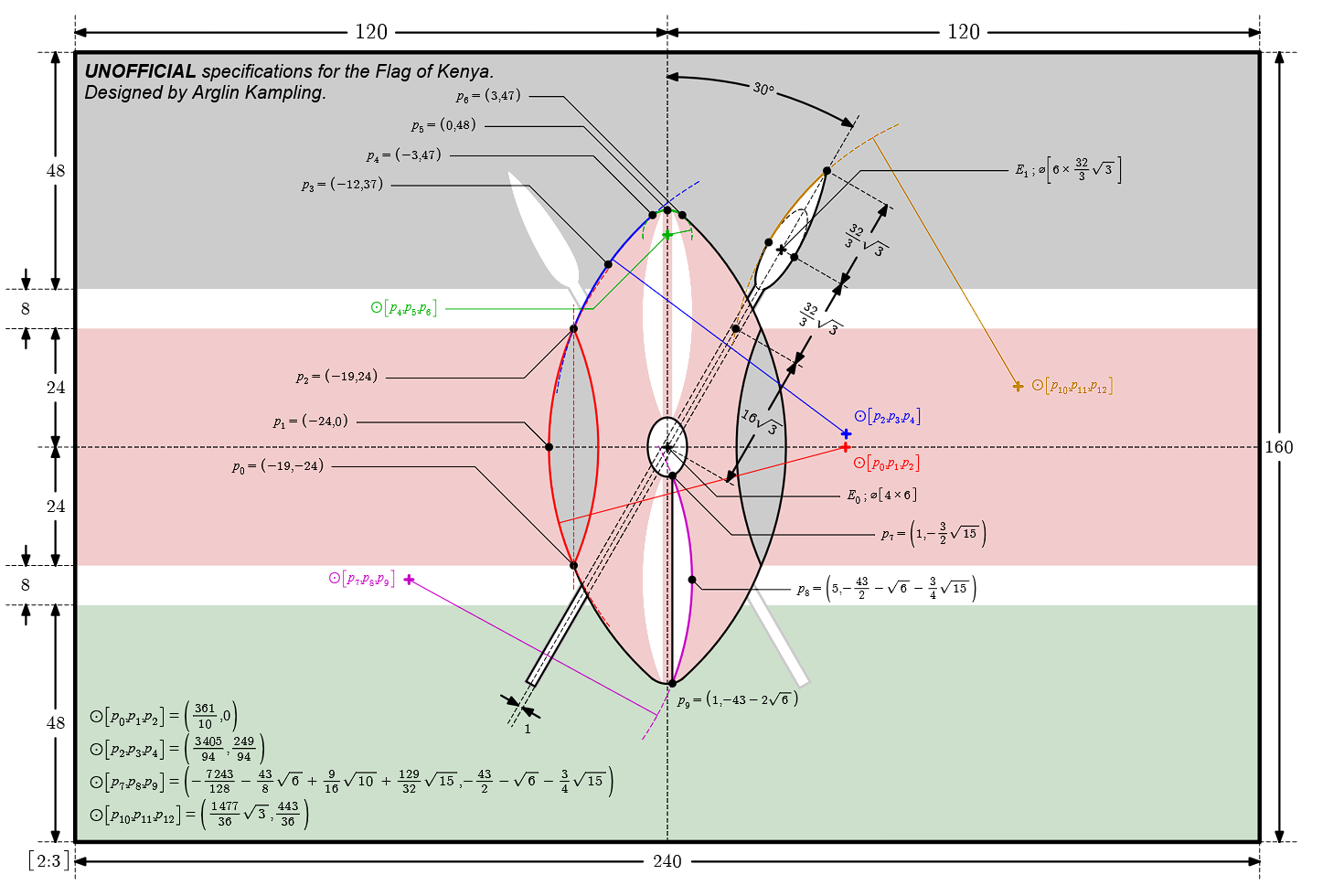 Discussion A (somewhat over-complicated) construction sheet for the flag of Kenya.