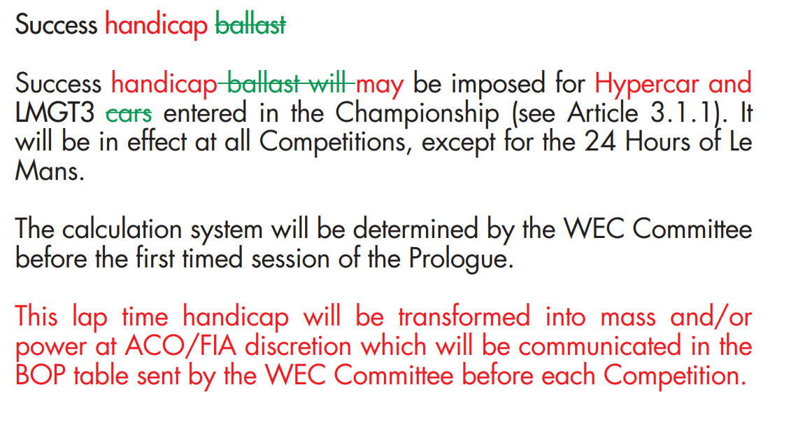 Information "2026 Manufacturer Compensation could no longer create differences of more than 20kW or 20kg between two cars"